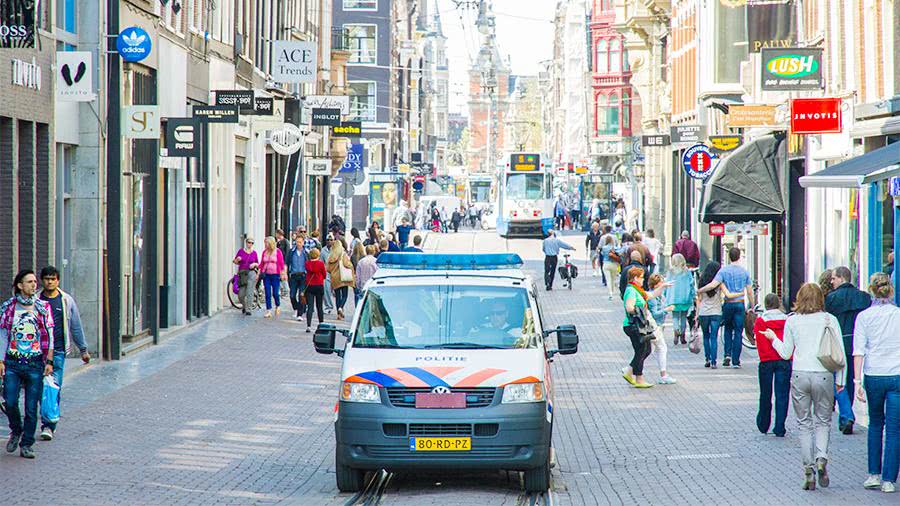 Полицейский патруль на одной из центральных улиц Амстердама