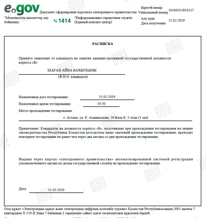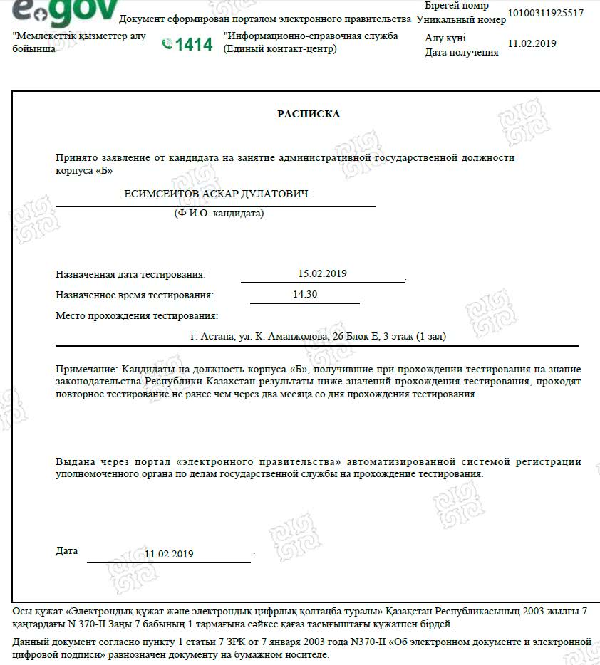 Тестирование ОЛК автоматически назначается лицу, получившему положительный результат по тестированию на знание законодательства РК. Кандидат по желанию может сразу же пройти тесты ОЛК или же записаться на другой день.