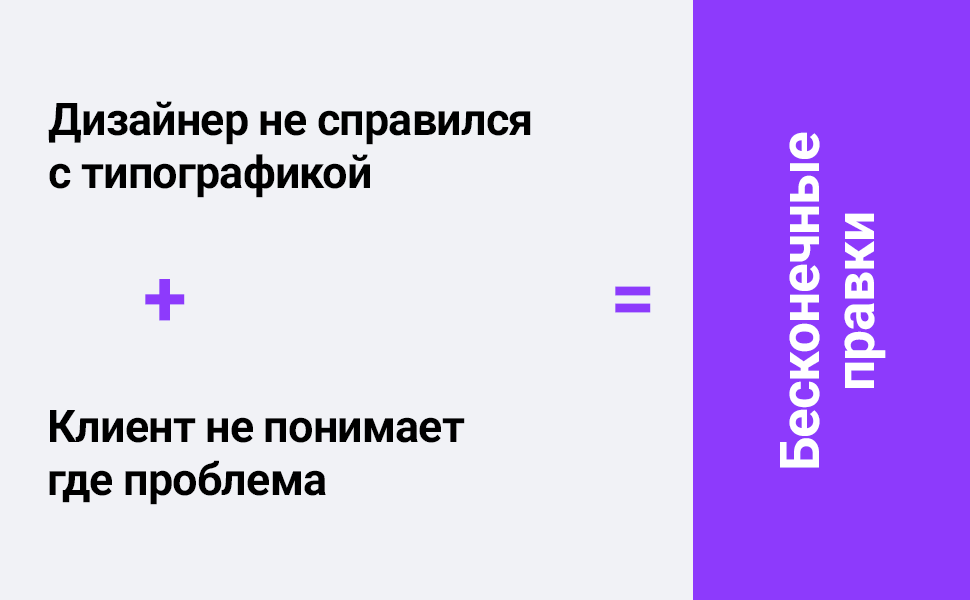 Первое и самое важное — типографика. Во многих случаях клиент не принимает дизайн именно из-за плохой работы со шрифтом