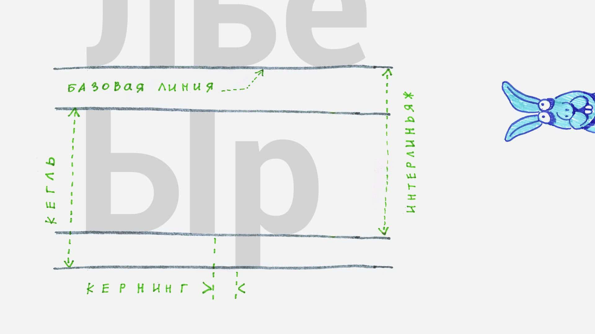 Кроме базовых линий, есть еще x-line (высота строчных букв) и cap height (высота заглавных букв). По линиям, лежащим сверху на буквах, вы можете выравнивать текстовые элементы: например, относительно картинок, которые находятся рядом.
