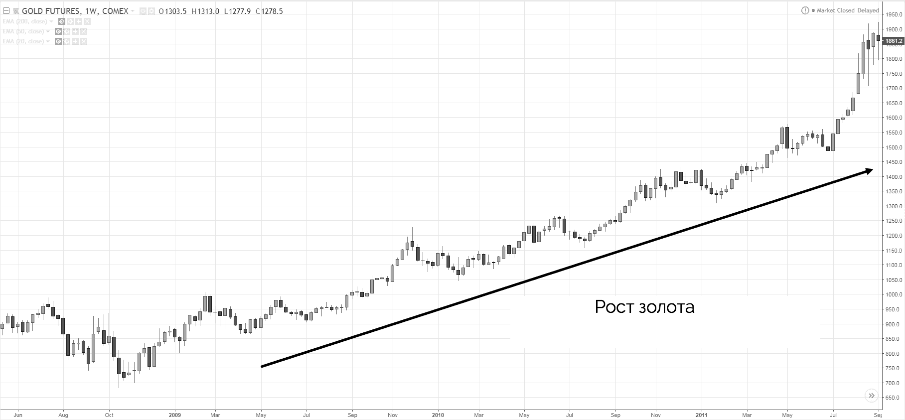 И есть небольшое давление продавцов, потому что все думают: «Зачем продавать сейчас, когда моя открытая прибыль растет с каждым днем?» Таким образом рост цены становится параболическим и достигает крайних значений. Но, как вы знаете, рынок не может расти вечно. В конце концов, когда покупать больше становится некому, рынок падает.