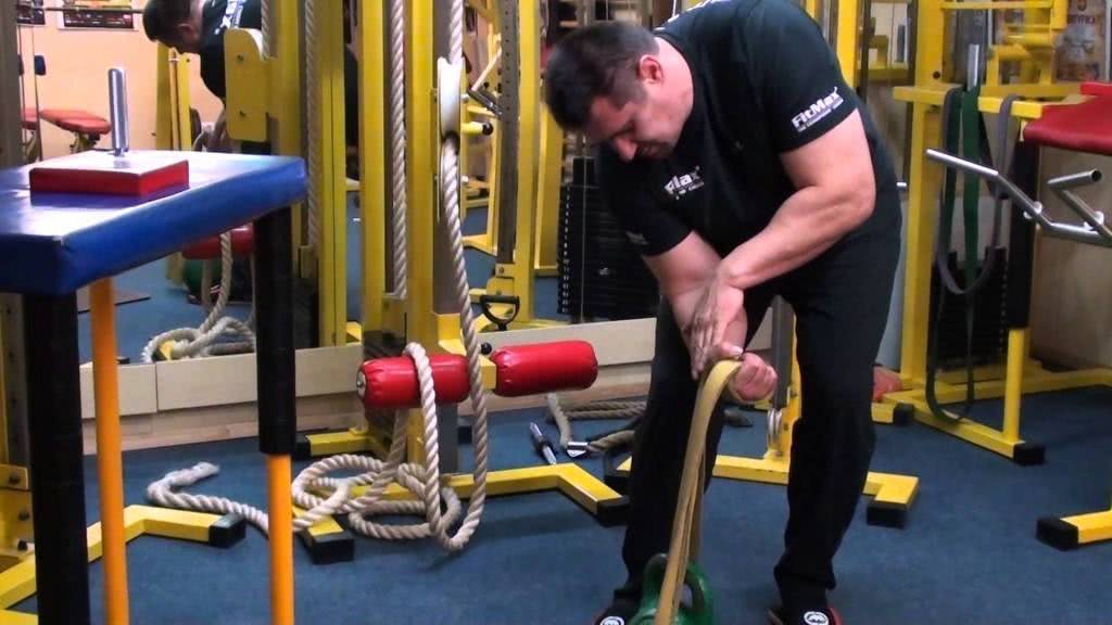 - Тренировки запястья и бицепса резиновым жгутом или эспандером, используя разные углы и имитируя борьбу.