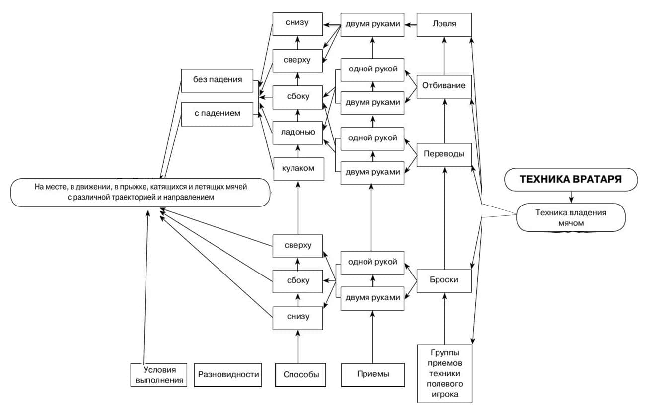 Список умений, описывающих технику игры вратаря в футболе кратко: