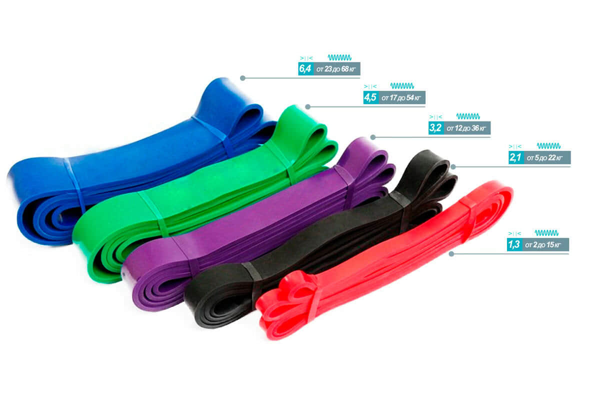 - В связи с тем, что фитнес-резинка имеет не одну степень сопротивления, вы сможете легко подстроить ее под нужную нагрузку. Если же необходимы усиленные воздействия на основные группы мышц, то можно использовать одновременно 2 резинки .