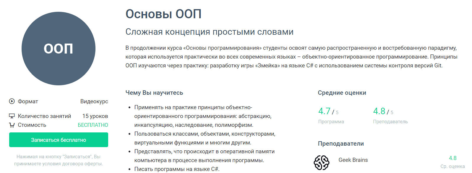 Основы программирования – интенсив от онлайн-университета GeekBrains, который познакомит вас с профессией, узнаете об языках и направлениях в программировании, зададите все волнующие вас вопросы преподавателю.