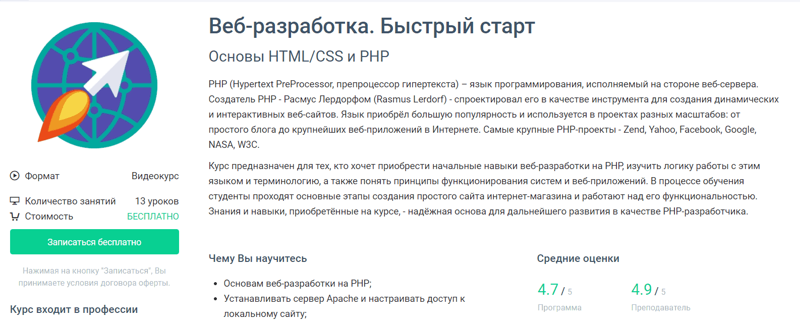 Профессия веб-разработчика от онлайн-школы Нетология подходит для тех, кто хочет создавать полезные сайты, мобильные приложения и боты для соцсетей. На курсе рассматриваются все необходимые аспекты для старта в карьере Fullstack-программиста: мобильная и адаптивная верстка, кодирование на языке JavaScript, объектно-ориентированный подход в PHP.