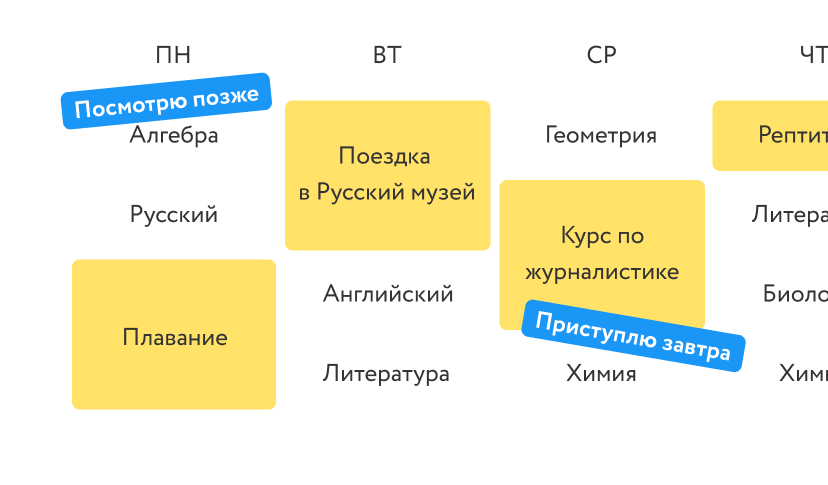 Определите удобное для себя расписание по основным школьным предметам — изучайте глубже то, что интересно и важно вам