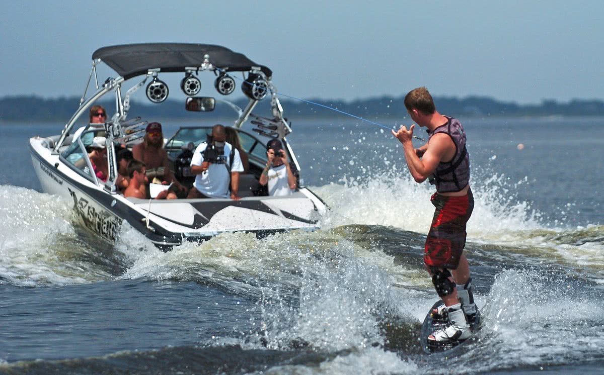 Для зрелищного вида спорта нужны доска и катер, в кильватере которого будет двигаться спортсмен