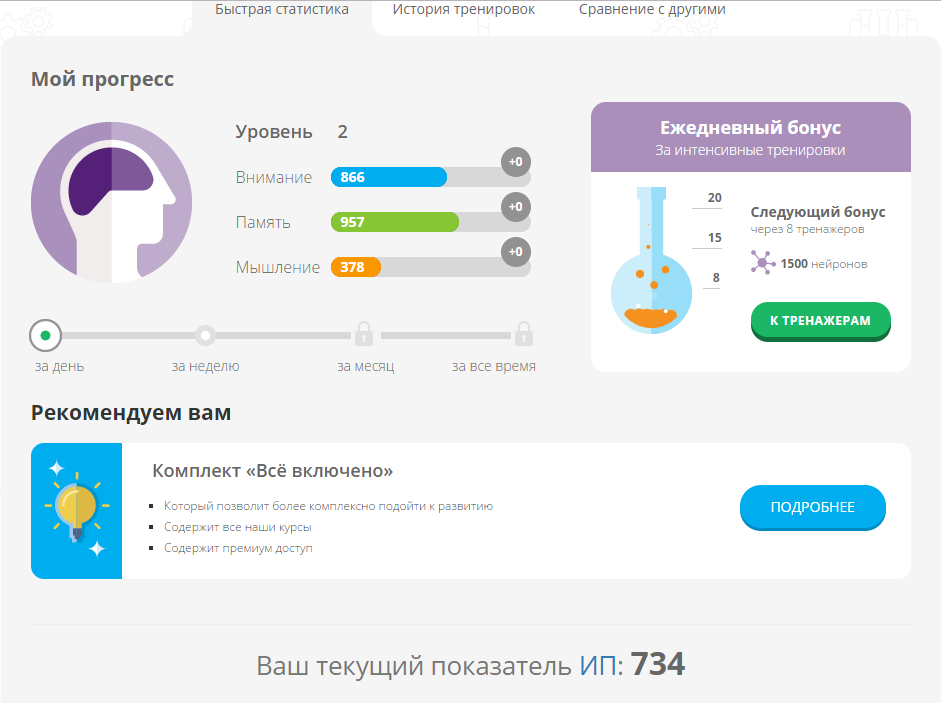 Если это для человека действительно важно, то можно заплатить за пользование услугой, чтобы улучшить свои навыки в профессиональной сфере. Действует услуга в течение 1 года.. Теперь вы можете в любой момент заходить на сайт и тренировать свой мозг