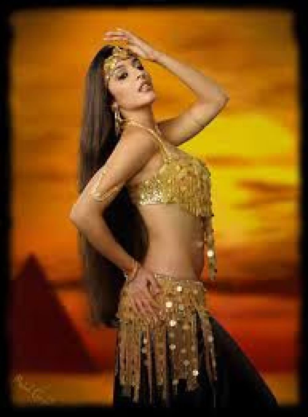 Ближневосточные танцовщицы имели наряд, который состоял из лифа и пояса, которые были украшены монетами или поясом из кисточек