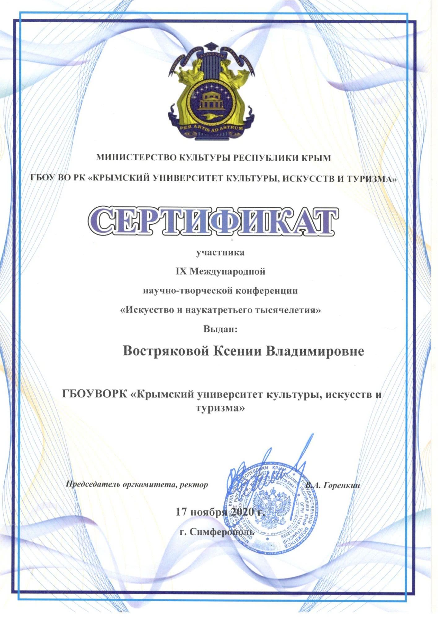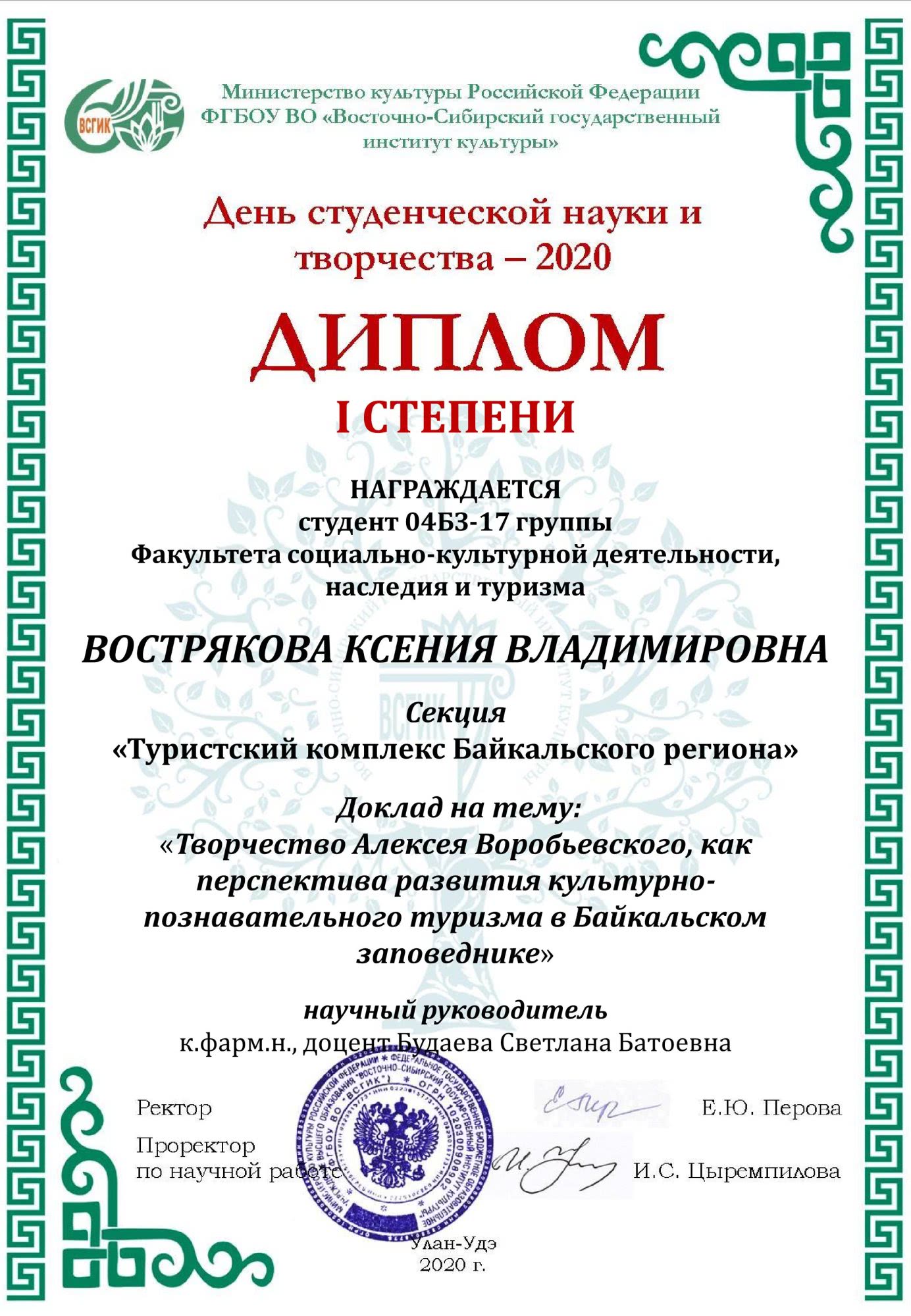 бакалавр 4 курса заочного отделения направления подготовки «Туризм» (научный руководитель к.фарм.н., доц. Будаева С.Б.) в 2020 году приняла участие и в III Всероссийской научно-практической конференции молодых ученых Социально-культурная среда регионов глазами молодежи 22 мая 2020 г ., в IX Международной научно-творческой конференции «Искусство и наука третьего тысячелетия» г. Симферополь, 16-17 ноября 2020.