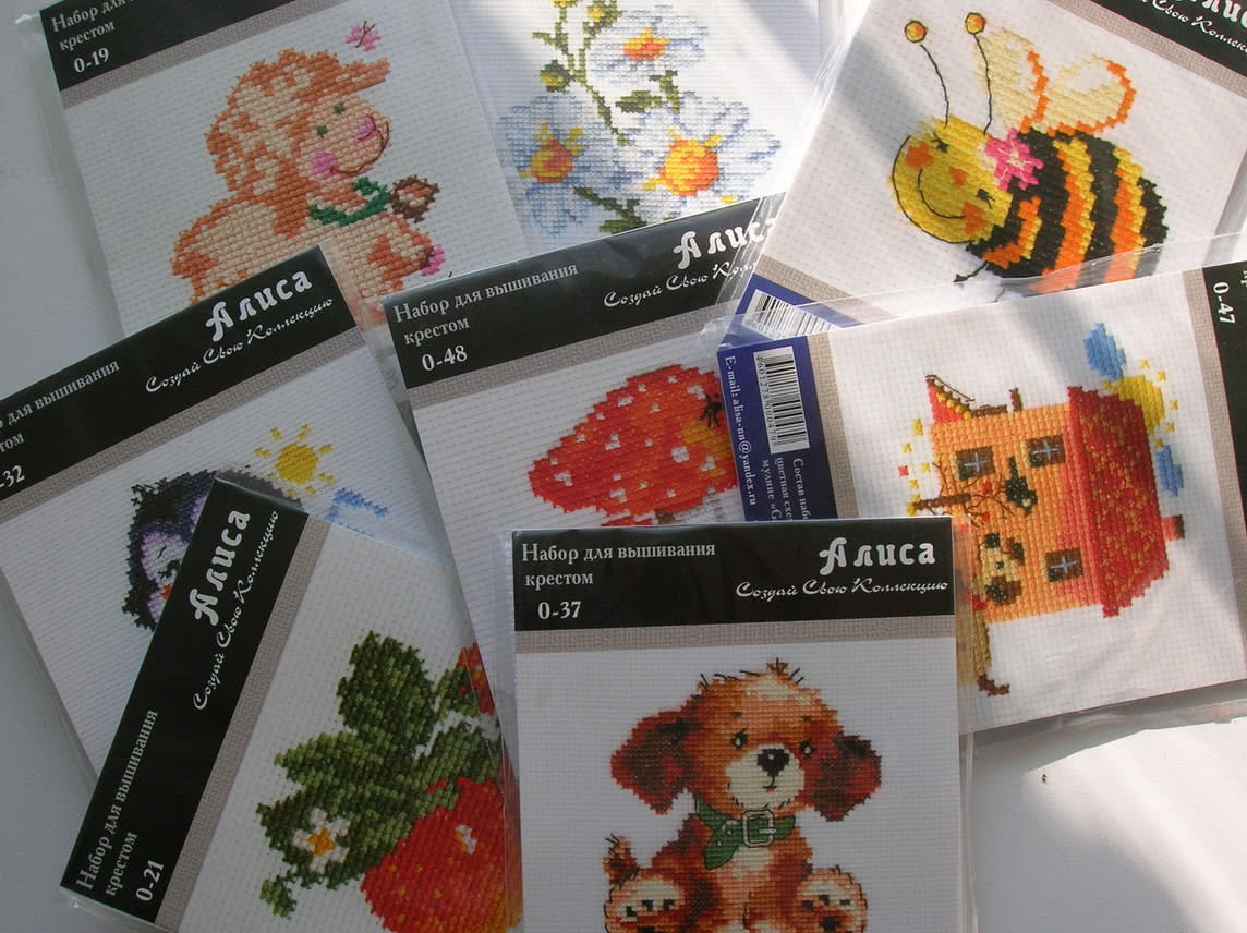 Общее увлечение новым занятием начинается с совместного похода в специализированный магазин, где можно купить все необходимое для вышивания. Выбор рабочих инструментов лучше сделать, конечно, взрослым. А вот то, что будет вышивать ребенок, пусть он выберет сам. Ему же можно доверить выбор и набора для мамы.