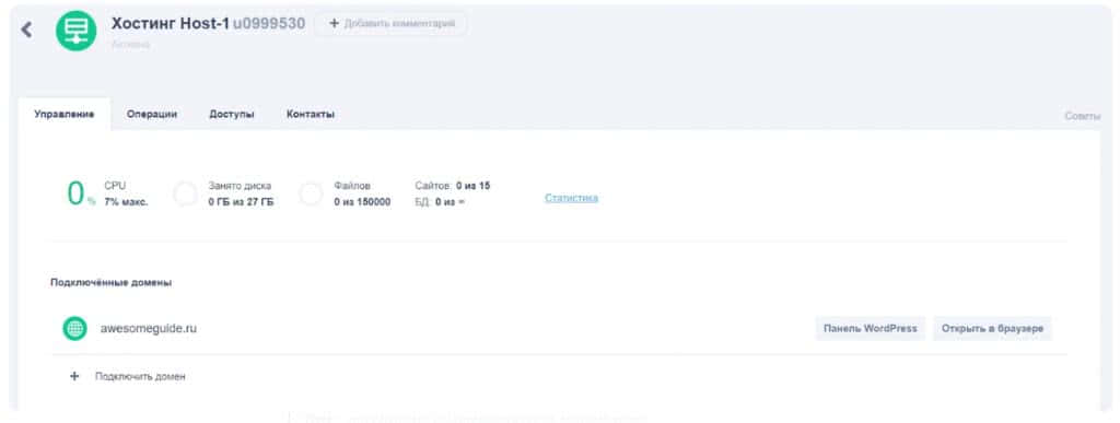 Для хостинга мы выберем тариф Host-1, так как на старте он подойдёт для большинства сайтов. Если в дальнейшем вам потребуется больше ресурсов, можно в любой момент сменить тариф на более мощный.