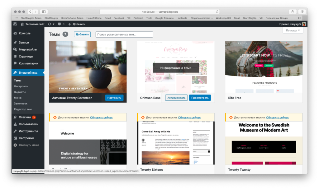 А дальше нужно активировать нужный шаблон в разделе «Внешний вид».